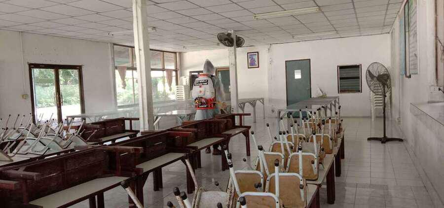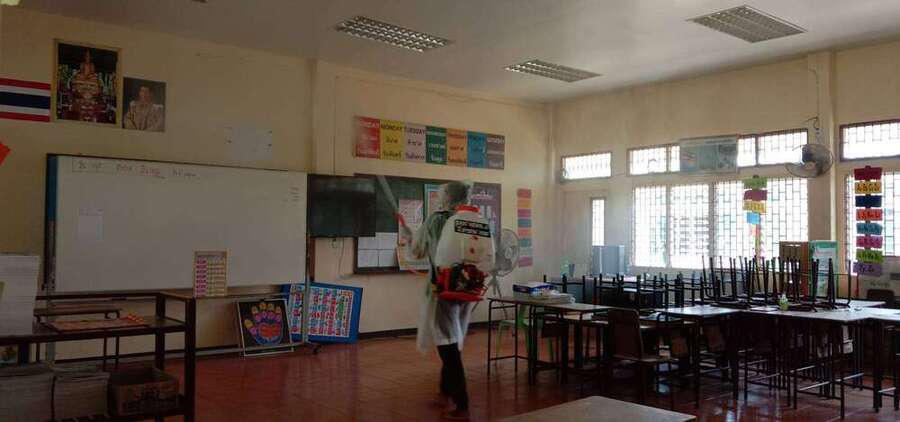 โรงเรียนเตรียมความพร้อมก่อนเปิดภาคเรียนที่ 1 ปีการศึกษา 2564 ป้องกันการแพร่ระบาดของ COVID-19 พ่นยาฆ่าเชื้้อ ล้างทำความสะอาดภาชนะและของเล่นทุกประเภท ทำความสะอาดอาคารสถานที่ S:0